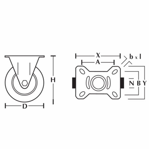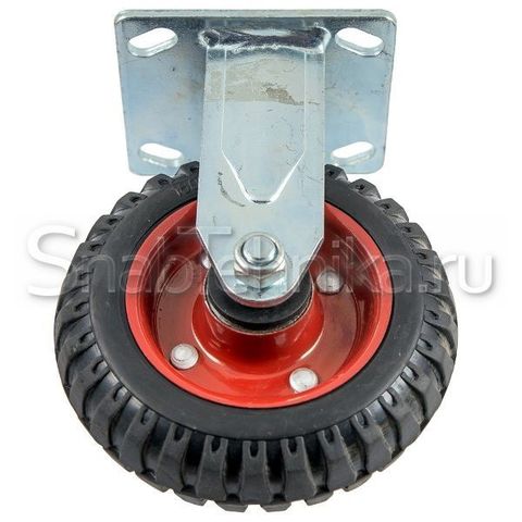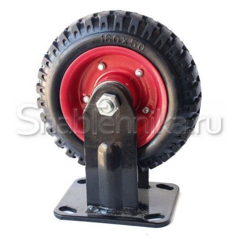 Неповоротная колесная опора, большегрузное неповоротное колесо PRF 160. Обод штампованная сталь, шинка литая протекторная резина. Диаметр колеса 160 мм. Кронштейн из листовой стали. Платформенное крепление. Колесо оснащено шариковым подшипником и бесшовной втулкой. Используется большегрузная колесная опора в промышленности, для перемещения грузов весом до 200 кг, в расчете на одно колесо. Применяется на передвижном оборудовании со стандартной и усиленной нагрузкой - на грузовых и усиленных тележках, промышленном и сельскохозяйственном оборудовании.