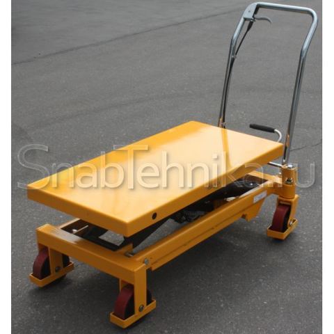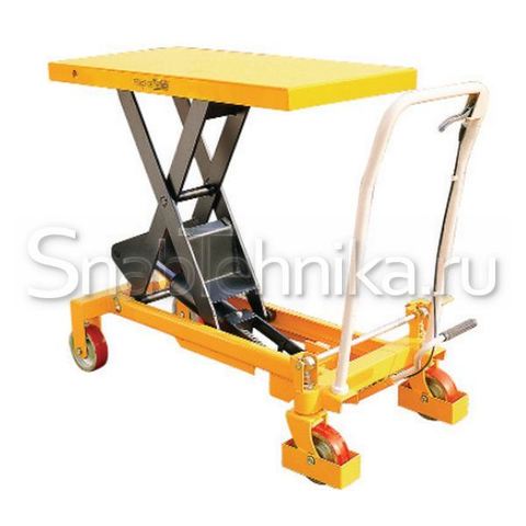 Типы подъемных столов: Столы передвижные ; Грузоподъемность стола, кг: 750 ; Длина платформы, мм: 1000 ; Ширина платформы, мм: 510 ; Высота платформы, мм: 55 ; Минимальная высота подъема стола, мм: 440 ; Максимальная высота подъема стола, мм: 990 ; Колеса, мм: 150 х 50 ; Количество качков до верхнего положения: до 45 ; Высота ручки от земли, мм: 1000 ; Вес, кг: 125