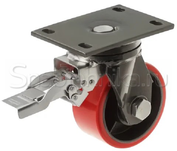 Сверхбольшегрузное поворотное колесо серия SHpb63. Обод литой чугун, шинка из полиуретана. Диаметр колеса 150 мм. Имеет платформенное крепление. Данная модель имеет большой запас прочности, и выдерживает нагрузку 1000 кг за счет продуманной конструкции и современных материалов. Она отлично показывает себя на разных покрытиях, обеспечивает маневренность и не издает много шума. Применяется на передвижном оборудовании с усиленной нагрузкой - различные тележки, контейнеры, вышки туры и т.п. Обеспечивают надежную эксплуатацию промышленного, складского и хозяйственного оборудования при больших нагрузках, на любых полах и дорожных покрытиях.