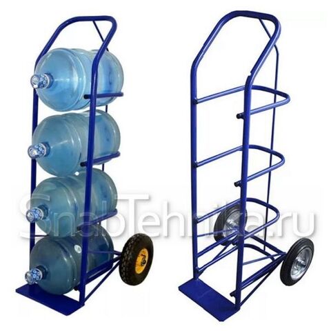 Тележка предназначена для транспортировки 4х 19-ти литровых бутылей с водой.