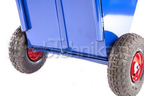 Тележка-дозатор с металлической емкостью для разбрасывания противогололедных химических реагентов, гранитной крошки, смеси песка и соли. Объем рабочего бункера – 56 литров. Корпус и металлический короб покрыты порошковым напылением. Тележка имеет механизм регулировки подачи, изменяющий ширину щели в дне кузова и позволяющий контролировать расход и снижать перерасход. Оснащена резиновыми надувными протекторными колесами.