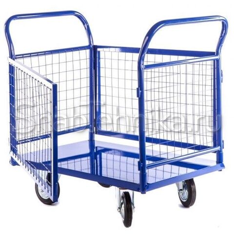 Тележка платформенная с сетчатыми бортами ТПЛБ 5х8-2Р 125-Ч. Размер платформы 500х800 мм 2 рукоятки 2 поворотных колеса 125 мм 2 не поворотных колеса 160 мм Высота(без колес) 720 мм Грузоподъемность 300 кг Тележка может комплектоваться колесами 200 мм. В этом случае грузоподъемность 500 кг, а также колесами 250 мм с грузоподъемностью 600 кг. Возможна поставка тележки без колес