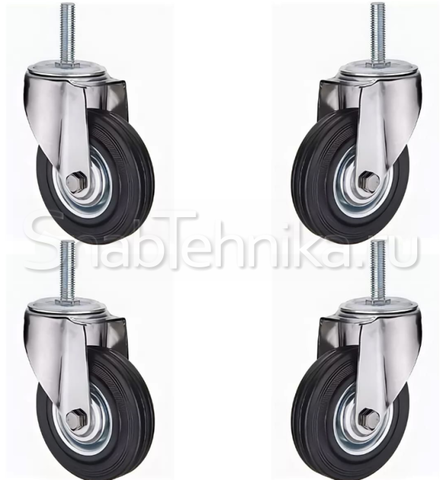 Тележка комплектуется поворотными колесными опорами из черной резины диаметром 125 мм с резьбовой шпилькой М12.