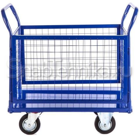 Тележка платформенная с сетчатыми бортами ТПЛБ 8х12-2Р 160-Ч. Размер платформы 800х1200 мм 2 рукоятки 2 поворотных колеса 160 мм 2 не поворотных колеса 160 мм Высота(без колес) 720 мм Грузоподъемность 400 кг Тележка может комплектоваться колесами 200 мм. В этом случае грузоподъемность 500 кг, а также колесами 250 мм с грузоподъемностью 600 кг Возможна поставка тележки без колес